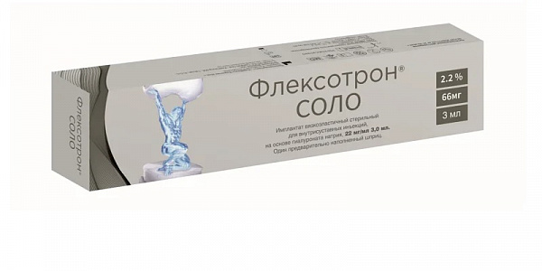 Флексотрон Соло средство для внутрисуставного введения шприц 22мг/мл, 2,2% 3,0мл шприц 1шт в наличии. Узнайте, как купить товар с бесплатной доставкой в Брянск, Клинцы, Новозыбкова, Дятьково и другие населенные пункты Брянской области на странице «