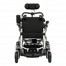 Коляска оснащена регулируемым подголовником и боковыми поддержками, которые обеспечивают правильную посадку пользователя.