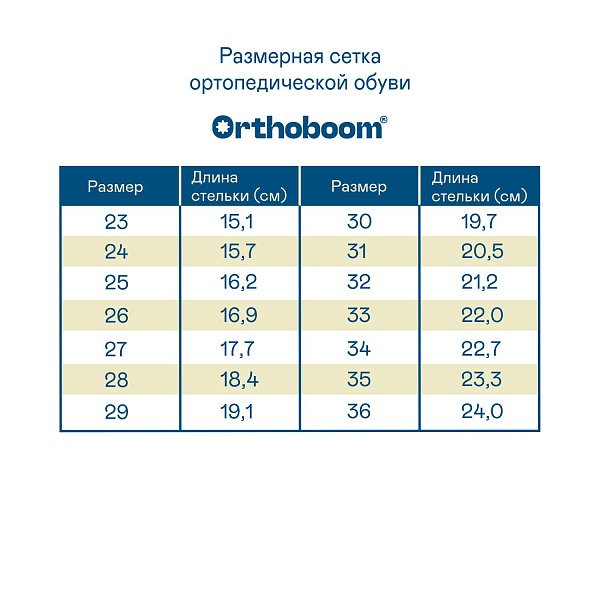 Полусапожки ортопедические Ортобум с шерстью для мальчиков 67055-02 ледяной кобальт ОРТОБУМ Верх: текстиль/искусственная кожа Подклад: шерсть Подошва: ТЭП Вид застежки: 3 ремня-липучки Модель с продуманной конструкцией и уникальным дизайном. Инновационная анатомическая колодка, обеспечивающая правильное положение стоп, сводоформирующие стельки, а также другие ортопедические элементы препятствуют развитию плоскостопия или предотвращают дальнейшую деформацию, если патология уже выявлена. За счет широкой раскрываемости модель легко надевается и снимается без дискомфорта. Для верха используется текстиль/искусственная кожа, внутри — шерсть, что гарантирует отличную износостойкость и правильный микроклимат. А нескользящая подошва снижает риск падения на любой поверхности. Зима в такой обуви пройдет с максимальным комфортом независимо от климатических условий. Подбор размера Определите размер по следующей последовательности:     1. Поставьте ногу на чистый лист бумаги.    2. Отметьте крайние границы ступни.    3. Измерьте расстояние между самыми удаленными точками стопы.    4. Найдите соответствующий размер в таблице размеров, расположенной ниже. 67055-02bry /upload/iblock/9b7/9b72071151ea6bbcfb7cb2b7112e0b71.jpg